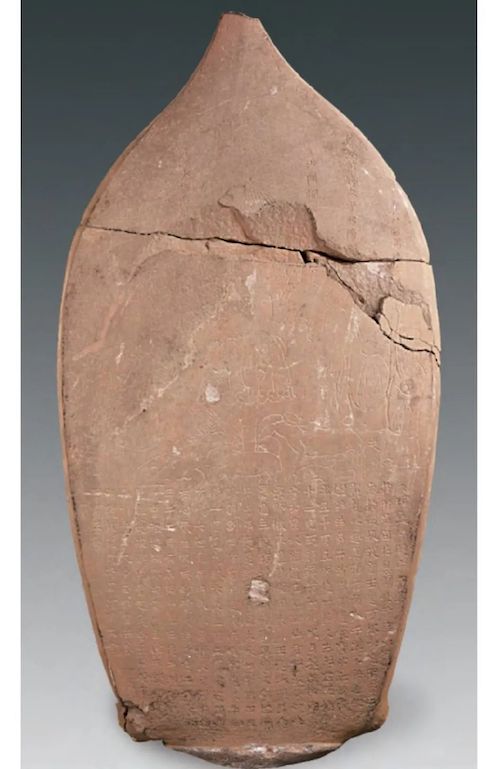 幸运意外而至。二〇一三年,忻州市区发现一处佛教造像窖藏,其中有一件东魏武定二年(五四四)的背屏立像,高1.28米,背面题刻丰富,下段是两百九十八字的发愿铭文,上段是一组线刻图像,包括一尊坐佛、五位供养人(含榜题)以及鹿、象等动物和植物。而供养人之一,赫然就是“勃海大王高欢”,头戴高冠,身着交领长袍,下着分裆裤,手举宝珠立于佛前(《山西忻州忻府佛教造像窖藏坑发掘简报》,《文物》二〇一八年第十二期)。可惜的是,因石质风化而面容模糊,看不出来“目有精光,长头高颧,齿白如玉,少有人杰表”的潇洒。