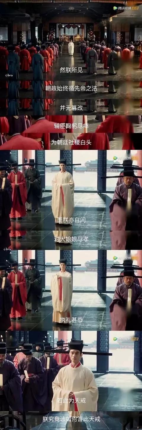 其次,则是不够明确的表达主体,从朝堂、市井到后宫,《清平乐》给观众最直观的感受是:事无巨细的全程铺垫,却未能提炼出核心。譬如就宋仁宗与大臣们朝堂之上论“旱灾”这场戏,原本这该是一场张力十足、引发大众热议的重头戏,却在导演的处理下,最后演变成三人依次发言、各抒已见的“平缓”局面。类似的还有上一秒还在朝堂议论大事,下秒就回归后宫的家长里短。