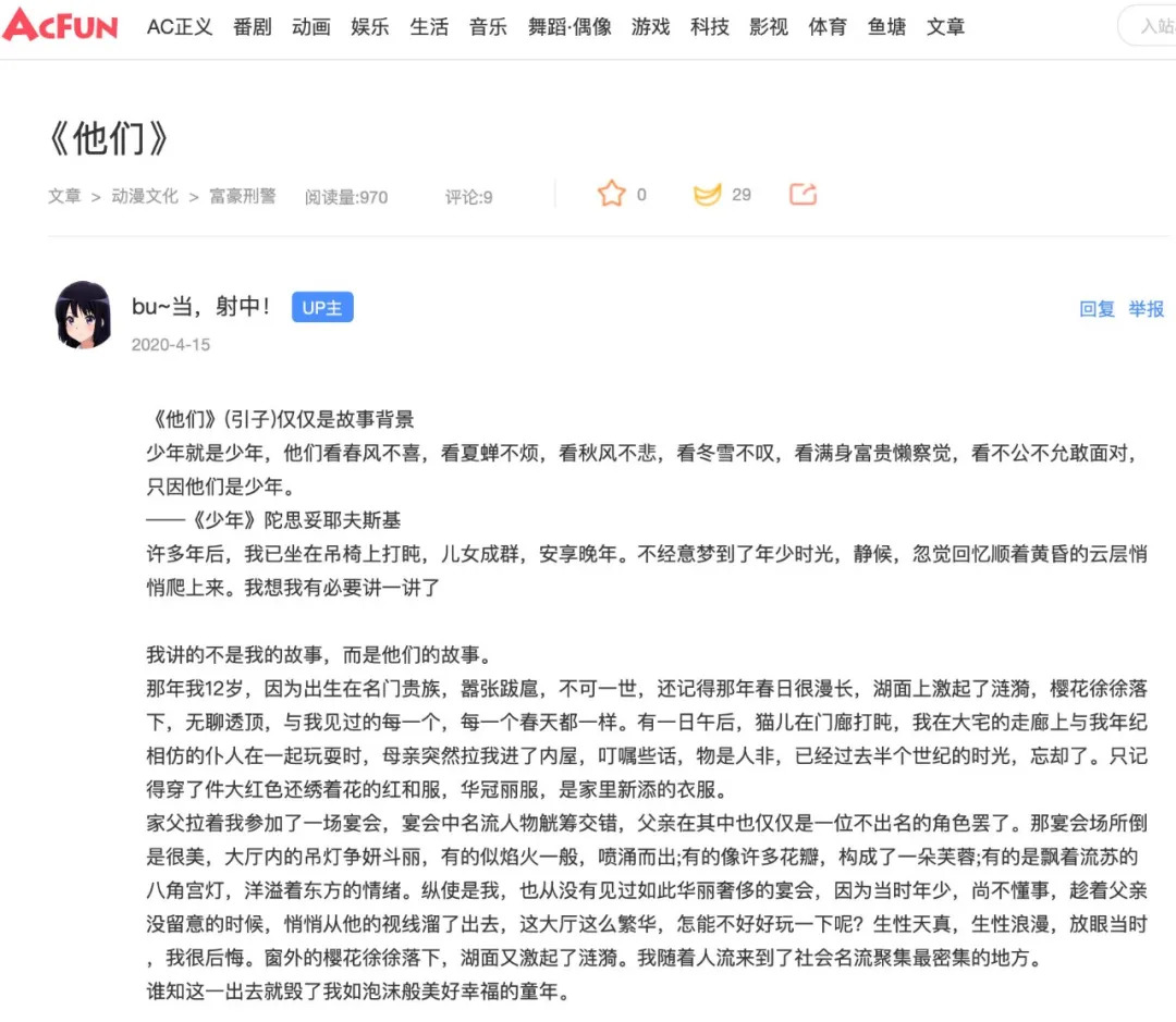 文章区是A站标志性分区,以硬核的ACG内容吸引了大量资深二次元用户,至今A站文章区仍是整个网站的核心内容区之一。而此次为《富豪刑警》专门增设文章分区,除了作为新番运营的一个方式外,或许也是因为这部新番本身的受众定位和A站原有用户之间的差异所致。