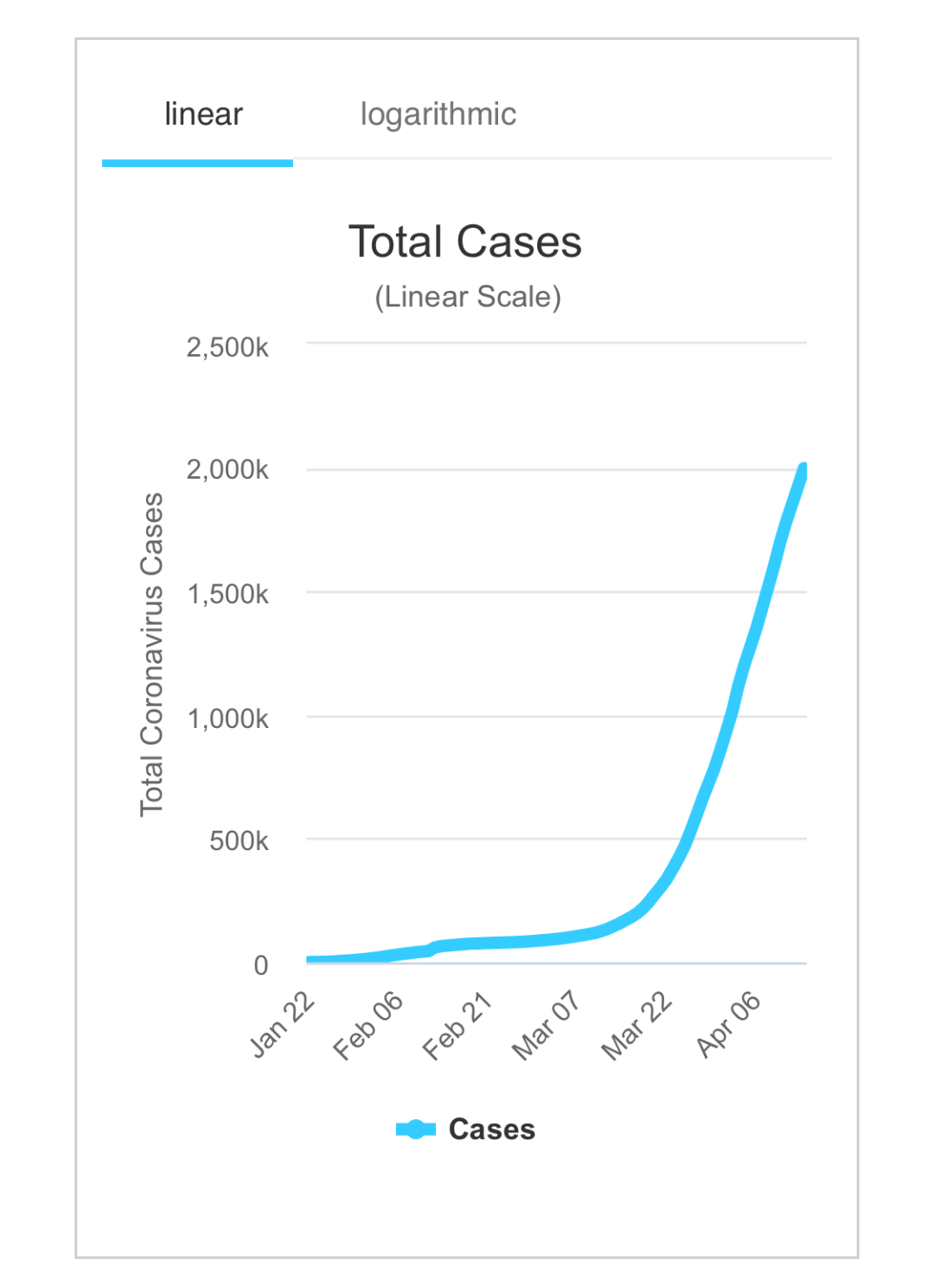 病毒攻破人类免疫防线,疫情全球蔓延。截至4月18日9时,全球211个国家和地区,累计确诊病例超过223万。确诊人数呈指数级增长——从0 例到 10万例用时110天,从100万到110万却仅耗时2天。