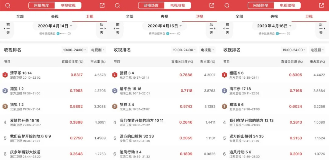 总而言之,随着各行业逐渐复工、社会恢复正常运转,疫情带来的红利即将消退,卫视之间、网与台之间的竞争终究要回归正常情况,靠内容说话。Q2的爆款剧TOP1将是什么类型、出现在哪个平台,我们拭目以待。