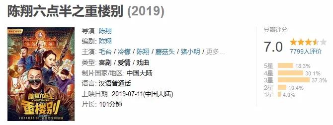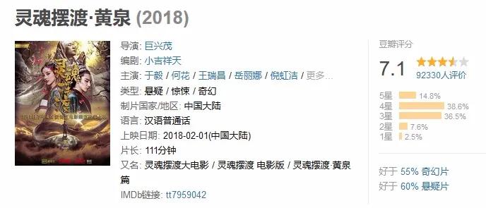 如此次《奇门遁甲》的5.4分,在网络电影市场已经名列前茅,豆瓣超7分的《灵魂摆渡·黄泉》和《陈翔六点半之重楼别》,恐怕在近几年内都会被定义为标杆。而剩余的大部分作品,就是观众们眼中的标准烂片。
