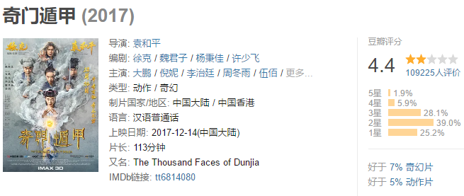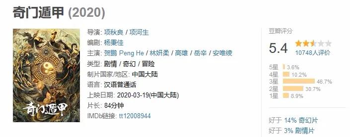 那网络版《奇门遁甲》的5.4又是从何而来,也不是一件难分析的事。不得不承认,在内容水平有限的情况下,网络电影版在一些方面的确更占先机。