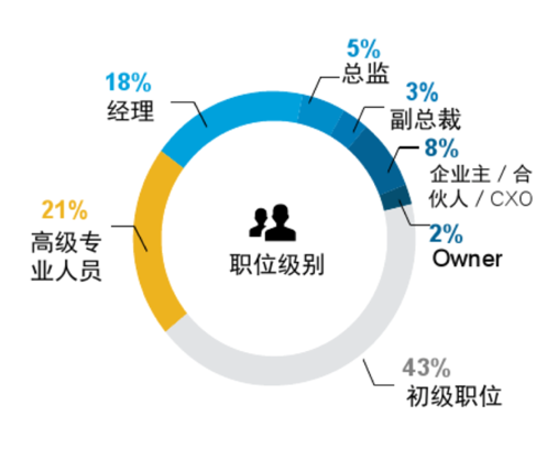 互联网行业整体呈现出“将多兵少”的状况,根据领英数据发现,互联网人才初级职位占比43%,高级专业人员占21%,经理占18%,总监、副总裁、企业主、owner等决策层共占18%。高级及以上职位级别人员比初级职位高出14个百分点。