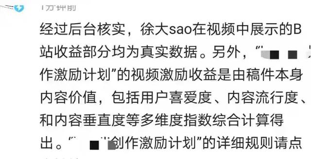 现在,徐大sao发布澄清视频,B站官方也辟谣称“相关收益数据真实”。并不存在欺骗。