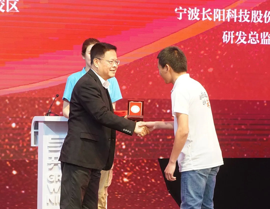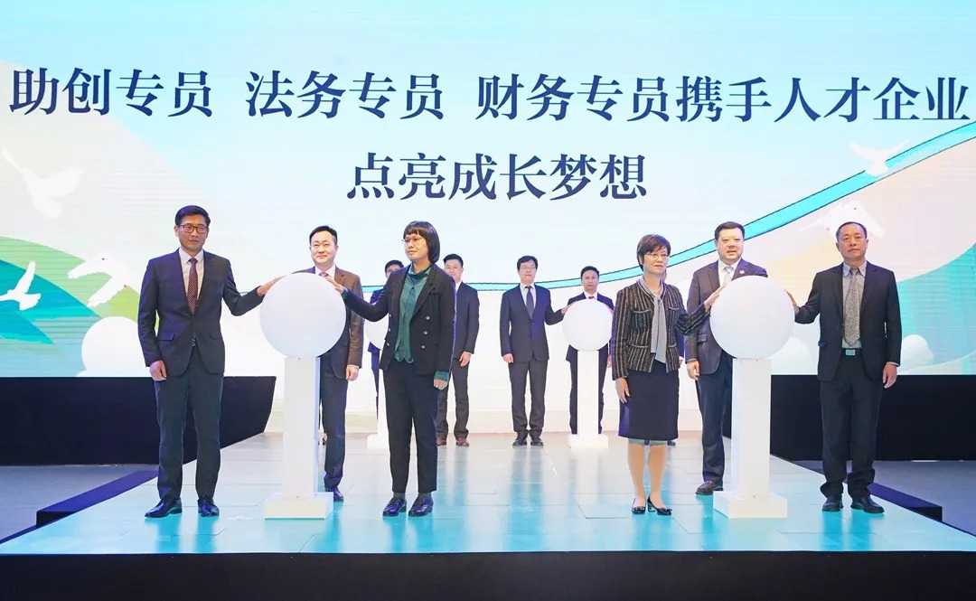 启动仪式上,宁波、舟山两市共同启动甬舟青年人才招聘会和“甬舟人才一体化发展飞地”,郑栅洁为9位人才代表颁发城市梦想徽章。