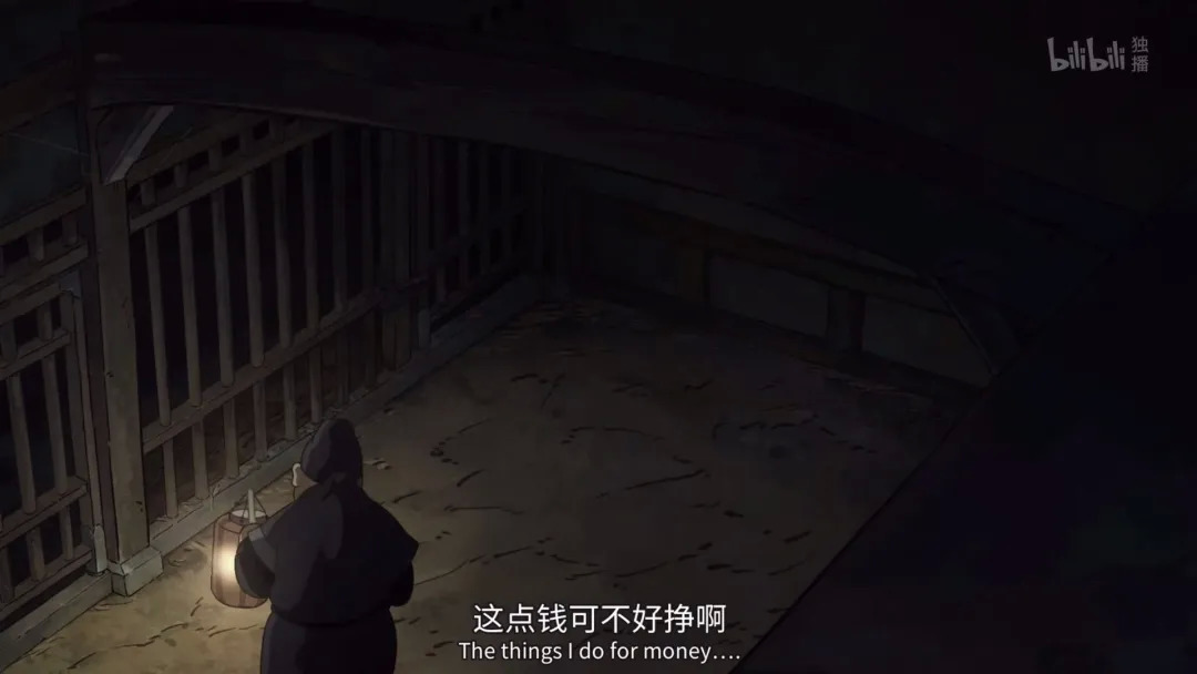 漆黑的大理寺地牢,尽头隐没在黑暗中的狭长台阶、凌乱的杂物、静寂无声的地牢,一个杂役提着灯笼前行,口中一直碎碎念,似是诉苦,又像是壮胆。
