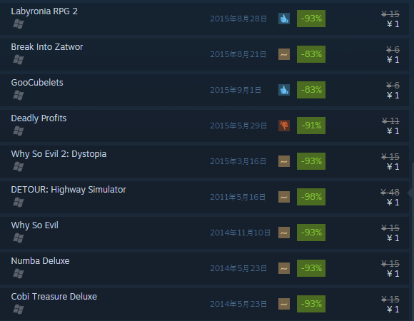我们现在再聊聊Steam上面的最便宜的那些游戏。每周steam都会有几个游戏的打折力度非常狠,尽管这些游戏都是些小游戏,而且很多的评价也很差,但是因为打折后的价格只有不到0.3美元,还是有很多人会购买用来“喜+1”。这种低价的游戏大多都有steam集换式卡牌,这种卡牌可以在steam市场中进行买卖。有的时候一个低价游戏掉落的所有卡片的卖出价格是高于这个低价游戏的售价的,于是,又出现了一批“挂卡回本”的人疯狂购买这种低价游戏。而这种现状在人民币结算上线后可能会发生十分巨大的改变。