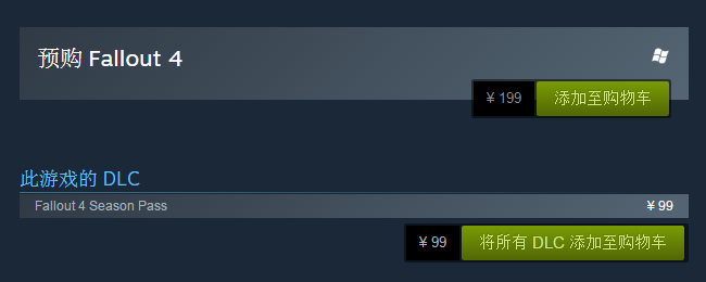 Bethesda社旗下的大作《辐射4(Fallout 4)》是今年年末最受期待的游戏 ,距离正式发售只有不到一周的时间了。作为一个3A大作,美区的定价从来都是妥妥的59.99美元,而国区的价格只要199元人民币。而美区29.99美元的季票,国区也只要99元,价格已经接近于美区定价的一半。不仅如此,游戏自带繁体中文,免去了语言的障碍,在Steam平台预购游戏还可以获得《Dota2》的语音包,对国内玩家而言可谓是福利满满。