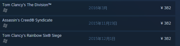 说了这么多,我们也看出来了,国内已经成为了一个新的低价区,但是这个低价区还不完整,这我就不得不吐槽育碧(Ubisoft)和卡普空(Capcom)。作为两大知名游戏厂商,他们的游戏价格只是转换了汇率,改成了人民币,而基础的定价却丝毫没变。育碧的几款59.99刀的大作,例如《全境封锁(Tom Clancy’s The Division)》、《彩虹六号:围攻(Tom Clancy's Rainbow Six Siege)》和《刺客信条:枭雄(Assassin's Creed Syndicate)》的价格都是382元,这个价格比11月4号的当日汇率换算后的价格还要贵上2块钱。卡普空的明年年初发售的格斗大作《街霸5》的售价也高达381元。难道是还没来得及修改价格?育碧和卡普空的这个做法让人十分不解。