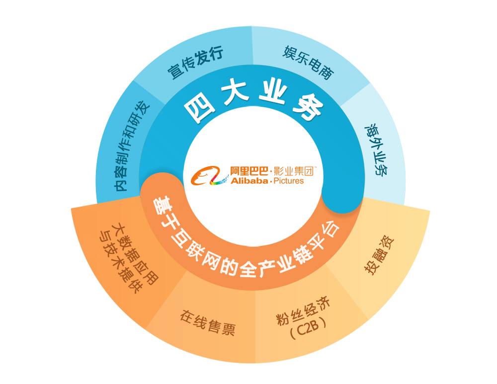 此次阿里巴巴集团将旗下两个与电影相关的重要资产注入阿里影业,将帮助阿里影业打造一条以互联网为核心驱动,拥有粉丝运营、投融资、内容生产制作、宣传发行和院线服务平台的全产业链娱乐平台。而此前阿里影业已全资收购的广东粤科软件工程有限公司,作为国内最大的影院出票系统提供商之一,将借力阿里集团的基础设施服务,为这个全产业链的应用底层提供技术和数据运营保障。