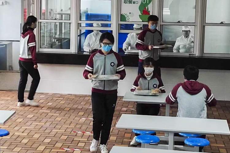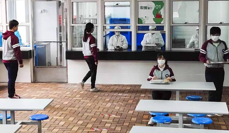 据校方观察,前一批11::20的学生可以在20分钟内全部吃完,中间20分钟留给消毒时间,至于中间的学生,学校会将餐送到教室中,让学生在自己的位置上吃。最后12点下课的那一批再来到食堂就餐。