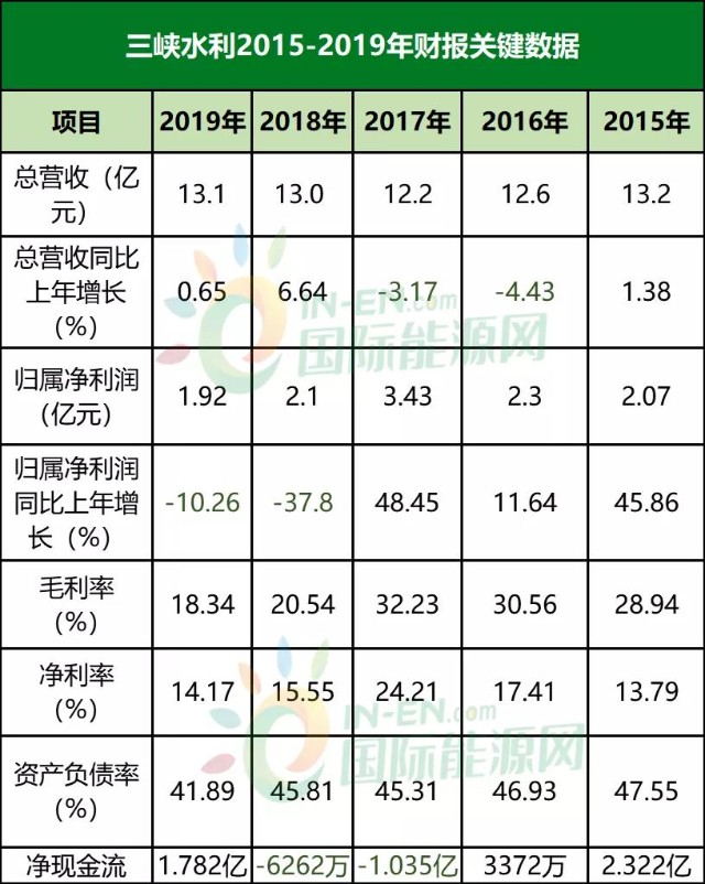 国际能源网记者查询资料发现,三峡水利之所以业绩下滑,其中一项重要的原因是自发电量下滑严重拖累了业绩增长幅度。根据三峡水利2019年公告数据显示:2019年完成发电量6.5亿千瓦时,同比下降6%,而2019年售电量创历史新高,完成售电量19.4亿千瓦时。计算其中差额,可以得出,有12.9亿度电是需要三峡水利去购买的,外购电量占比高达66.49%。而外购电量成本较高严重影响了公司的利润率,进而让业绩在近几年接连下滑。