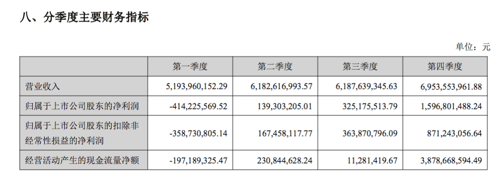 分季度来看,正邦科技从去年第二季度开始进入盈利状态,在第四季度归属于上市公司股东净利润达到15.97亿元,占全年盈利比例高达96.95%。