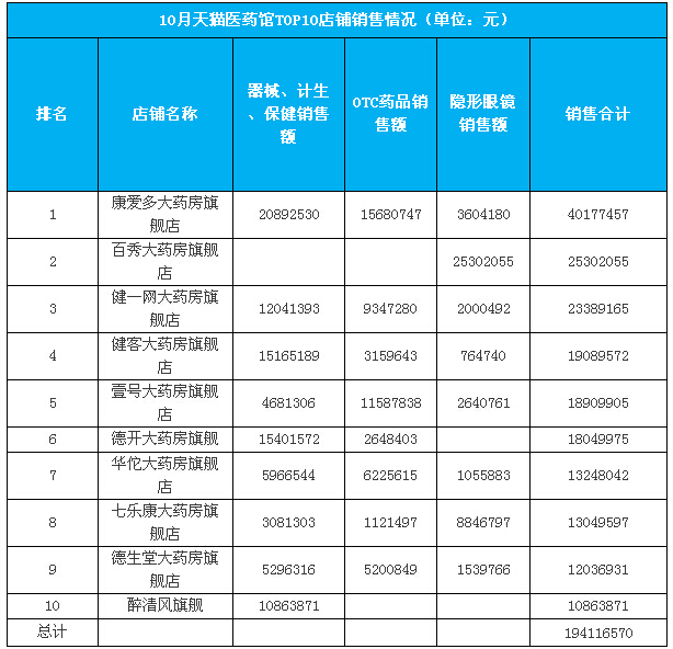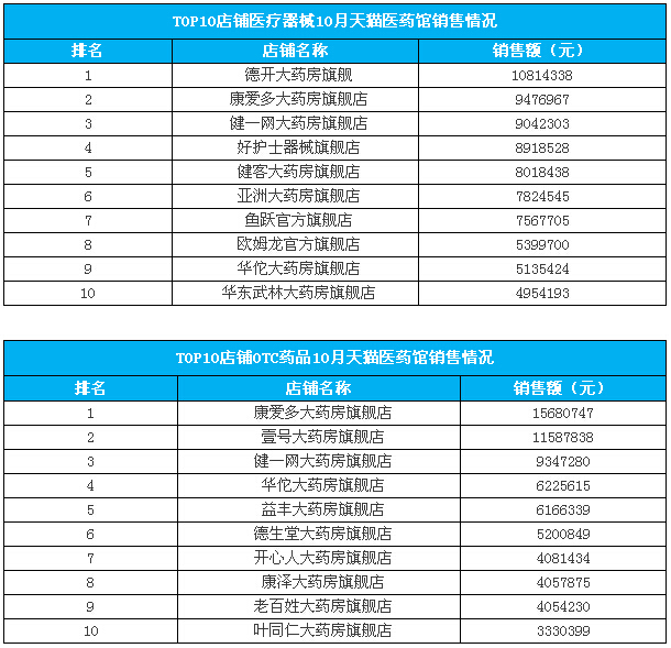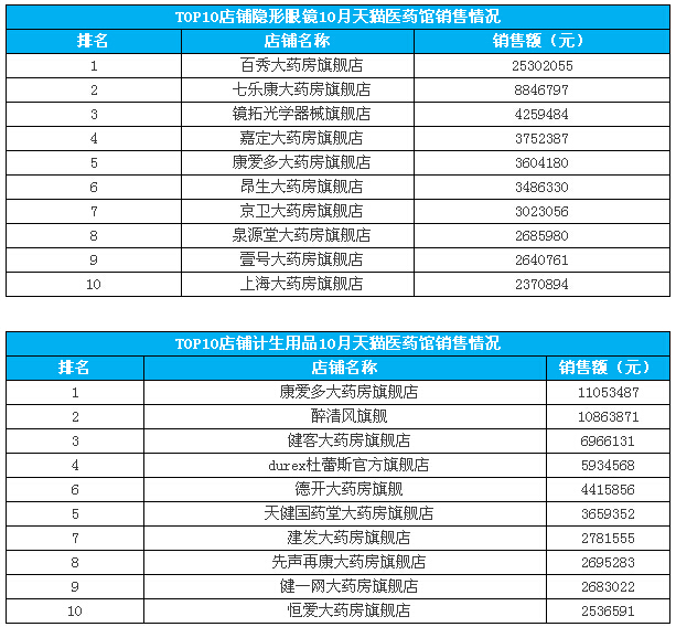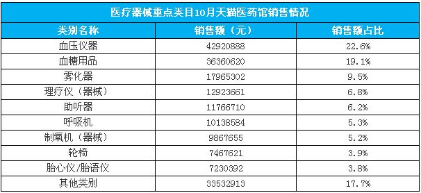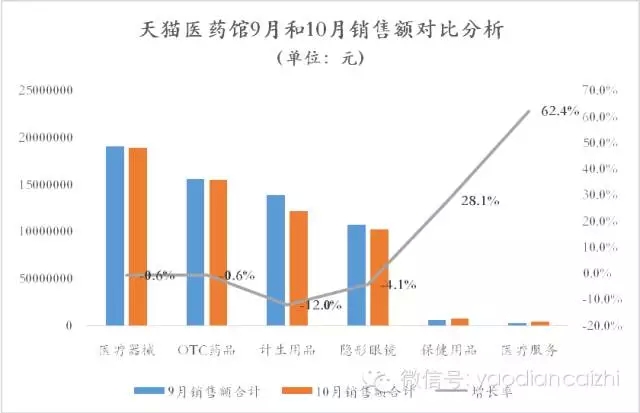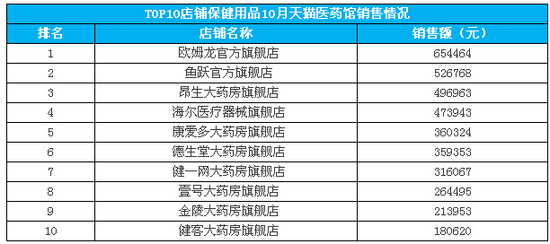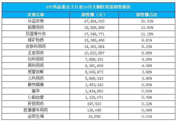 10月天猫医药馆六大类目销售额份额超80%