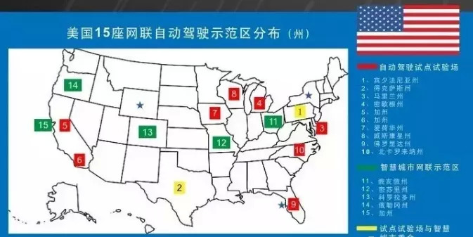 2016年11月,美国交通部正式公布“自动驾驶试验场试点计划”,并于2017年1月19日确立了10家自动驾驶试点试验场。