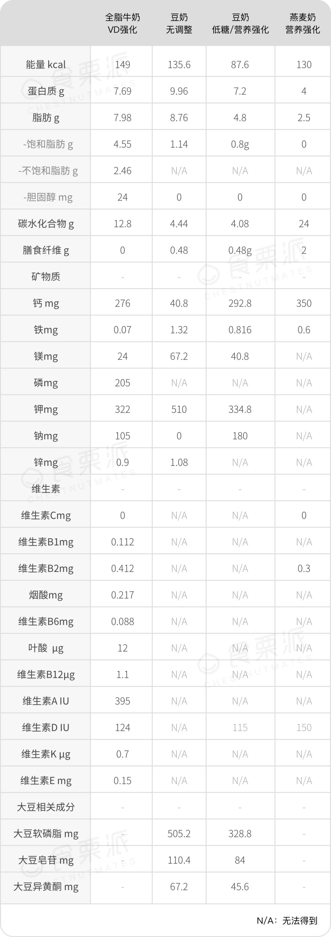 前面也说了,有关植物奶产品的营养信息、研究都很有限,所以只能给大家一个大致的参考:
