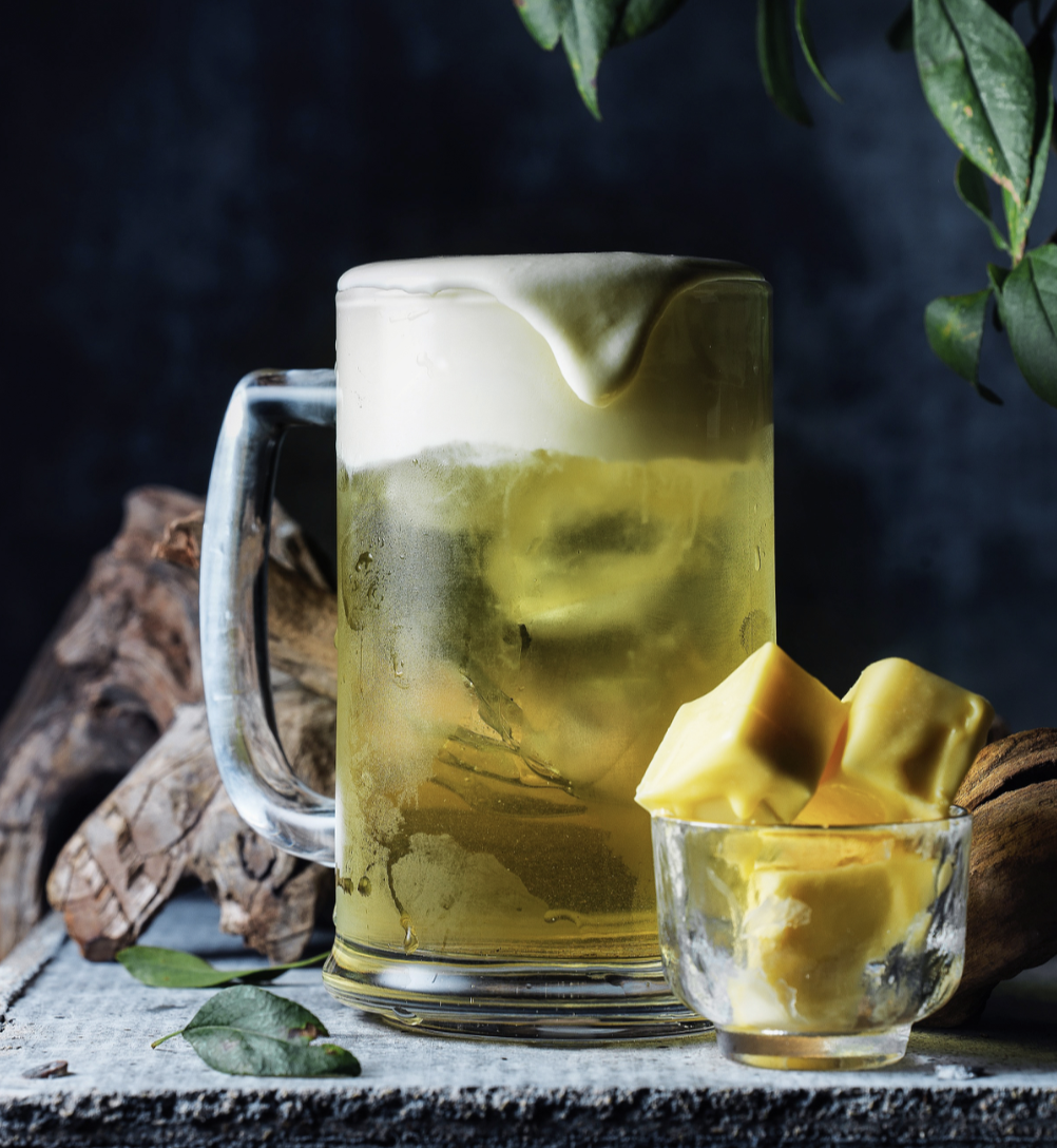 黄油是从奶油中进一步分离出来的脂肪,又叫乳脂,国内一般很少被直接食用,国外涂在面包上比较常见。优点是乳香味无可比拟,缺点是需要加热才会溶解,对冷饮并不友好。但刘展鸿在研究中,发现了黄油的新应用。