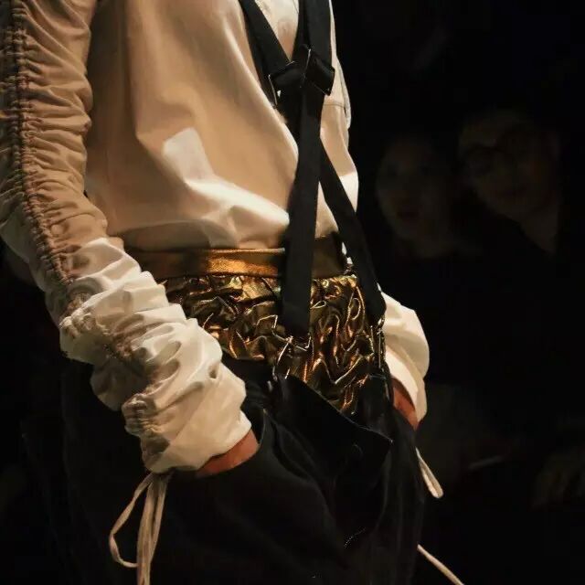 脱到一半的牛仔裤与短上衣的融合以及狭长的抽绳抽褶袖型贯穿始终都会是对情色元素的全新诠释,解构主义的延续和呈现会让更多新奇有趣以及创新的穿着体现出更多的可能性。这是关于青春以及荷尔蒙躁动,关于飞扬跋陀以及叛逆的力量,以及真诚。