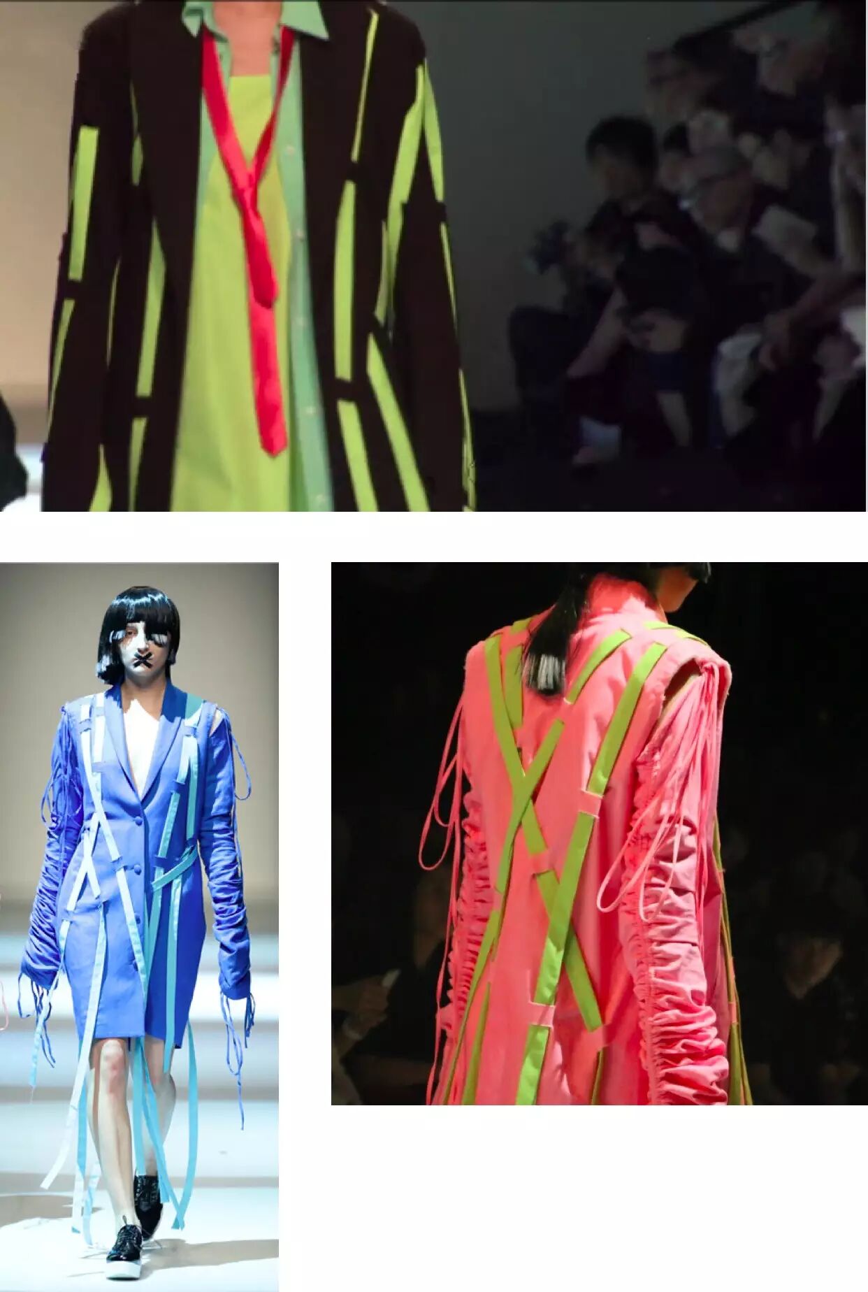 这一季与以往有着很大的不同,丹宁的加入为品牌注入了新元素,由于涉足了一些关于恋物、小情色、疯狂与叛逆的领域,因而这一季加入了非常多高饱和度的色彩,桃红、银光绿、电光蓝,把他们交错在一起使用变成非常极度的色彩,与品牌一贯延续的黑白形成强烈的对比,极度的颜色是一种释放,碰撞以及爆发。