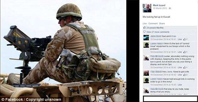▽ 在他上传的其中一张照片里,一名身穿军装的男子坐在一台迫击炮后,那是他在科威特巡逻。