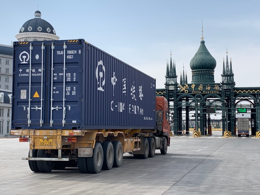 满洲路公路口岸的货运海关查验检疫通道。 受访者供图
