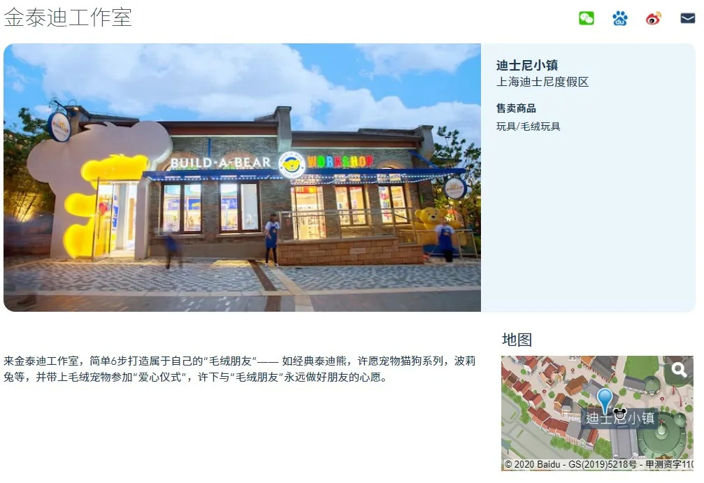同时,电商平台和线下门店一样,支持定制化服务。在把玩偶添加到购物车以后,顾客能为小熊添加衣服、配饰、录音等。一套流程下来,根据你选择的玩偶的款式,价格大约在50美元到80美元之间。中国区的售价也差不多,大众点评里上海迪士尼乐园内的金泰迪工作室人均消费是412元。