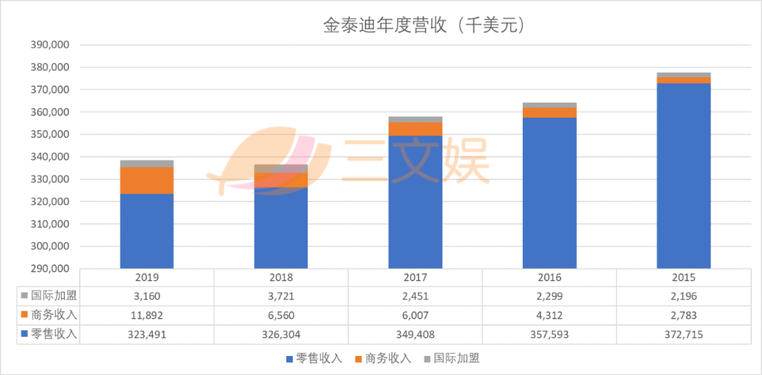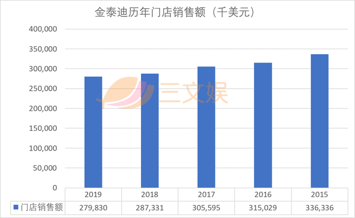 2019年,金泰迪的零售收入3.23亿美元,较去年出现了小幅下滑,主要原因是商场的客流量持续减少。