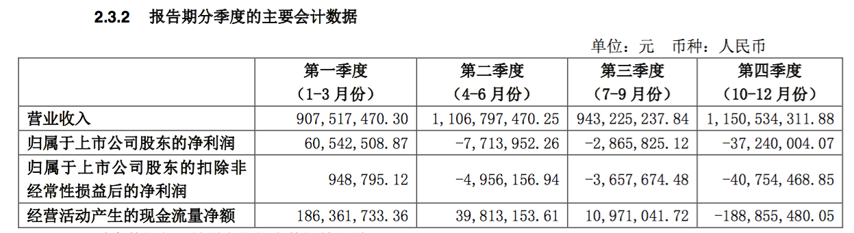 根据金健米业2019年年报,公司去年实现营收41.08亿元,较上年同期增长36.43%;归属于上市公司股东净利润为1272.27万元,同比扭亏为盈。从分季度数据来看,2019年全年,除一季度公司有所盈利,剩下三个季度均处于亏损状态。