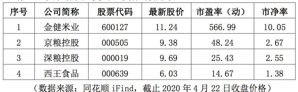 从同行业上市公司平均水平来看,金健米业目前的市盈率和市净率水平显著高于平均水平。截止4月22日,金健米业目前市盈率已达566.99,远高于同行业14.67-48.24的平均水平。