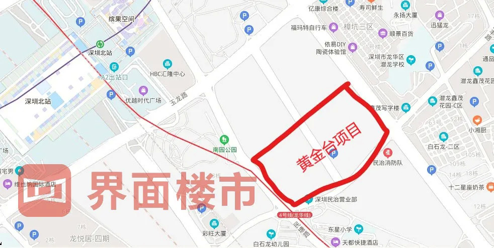 在这场漫长的拉锯战期间,黄金台项目所处区域被用于规划建设深圳北站和地铁4号线,共计占用项目用地 17.35 万平方米。
