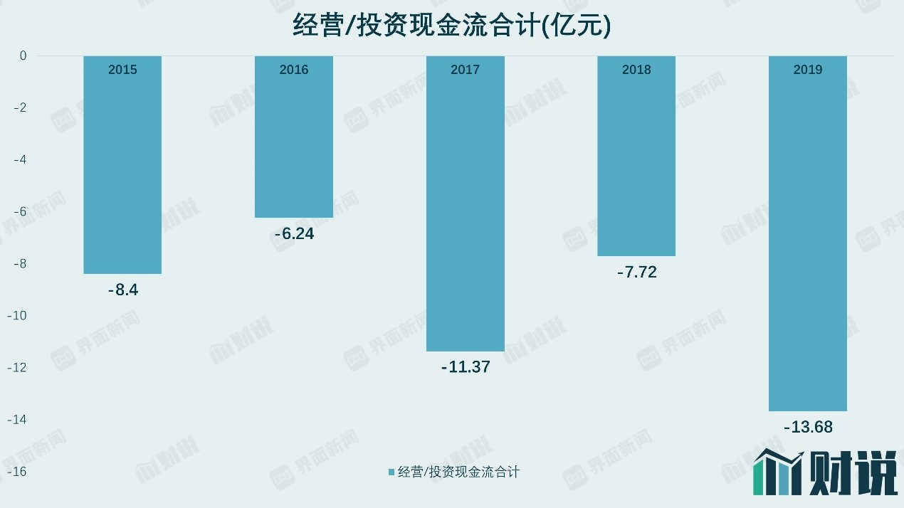 科大讯飞的“虚胖”从现金流也可以得到佐证。公司2015年至2019年期间,公司经营活动产生现金流净流入合计38.57亿元,投资活动产生现金流净流出85.99亿元,两者合计净流出47.42亿元。同期,公司无形资产由期初的6.5亿上涨两倍至20.51亿;商誉由4.94亿上升126.92%至11.21亿。利用高科技企业的身份,科大讯飞成功将流出的资金转换为无形资产、商誉等“虚拟”资产。