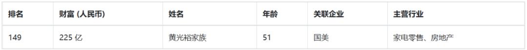 225亿身家在榜上虽然不起眼,但对于仍身在狱中的黄光裕来说,俨然已经足够其重出江湖的资本。