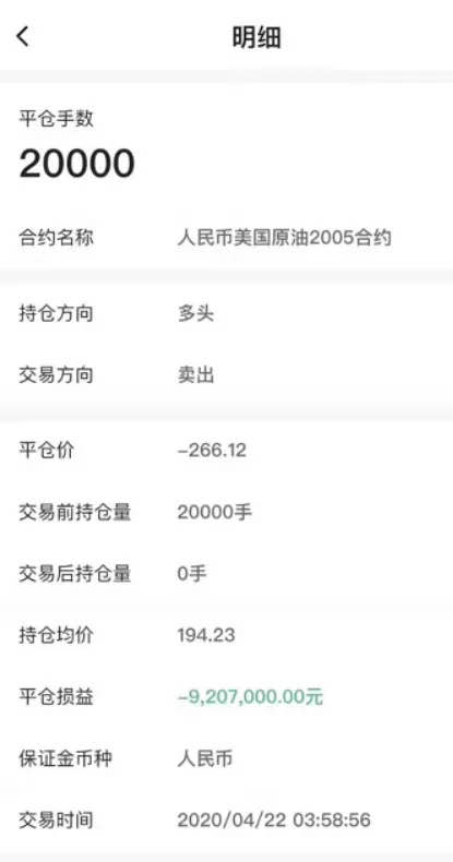 原油宝涉及的规模和头寸目前还不得而知,但当晚遇到如此罕见的波动,在原油价格逼近0、甚至是负价格的情况下,中国银行原油宝产品,有没有交易员执行风控,眼睁睁的看着价格跌至负值以下,最后以-37.63美元的史上最低价附近结算。
