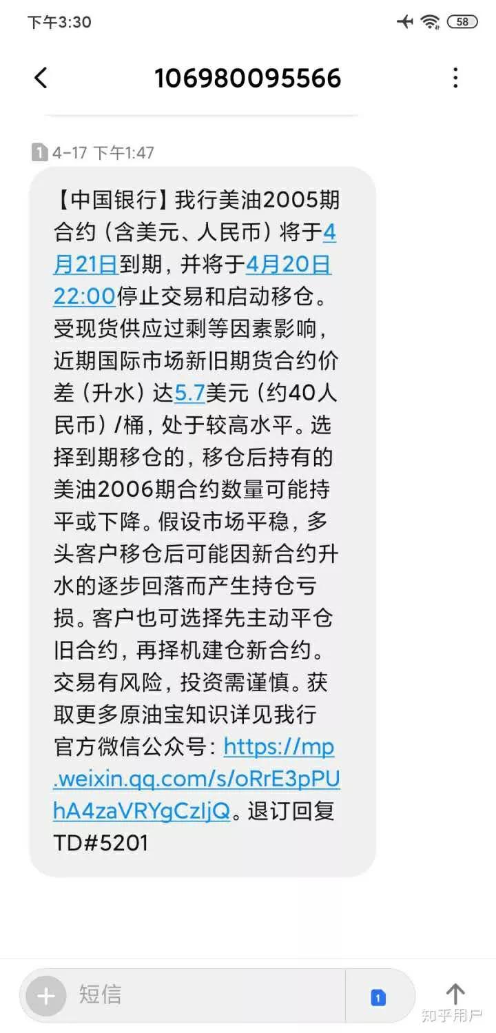 然而,4月15日,CME刚刚修改规则,允许原油期货价格可以为负。中行错就错在,它并没有及时提醒客户损失有可能会超过本金。投资小白在面对此种情况时,并不知道自己应该提前卖出或手动移仓,这就导致损失惨重。