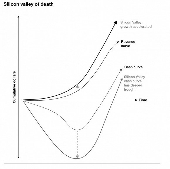 骆驼通过采取更加平衡的增长方式来改变死亡谷曲线。下面的图表简洁地解释了这种方式: