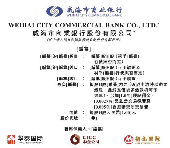 4月15日, 威海市商业银行股份有限公司(下称”威海银行“)向港交所递交了招股书。