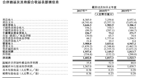 招股书显示,威海银行2017-2019年营业收入分别为39.08亿元、38.34亿元、49.47亿元,净利润分别为15.67亿元、9.64亿元、14.40亿元,2019年净利润增幅达49.28%。截至2019年末,威海银行资产规模为2246亿元。