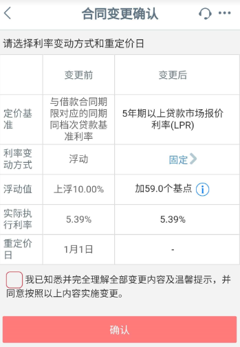 图2:选择LPR浮动利率,重定价日为1月1日(原合同规定日)