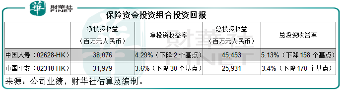 平安包括净投资收益、已实现收益、公允值变动损益以及投资资产减值损失在内的总投资收益同比下滑60.1%,至259.31亿元,这很可能与公允值变动盈转亏有关,所以期内的年化总投资收益率同比下降了1.7个百分点,至3.4%。而中国人寿期内的总投资收益率为5.13%,同比下降1.58个百分点。