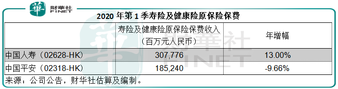 2020年第1季,平安寿险及健康险业务的归母净利润同比下降53.46%,至144.51亿元,占集团总额的55.45%;同期,中国人寿的归母净利润同比下降34.4%,至170.9亿元。