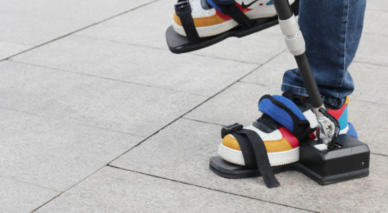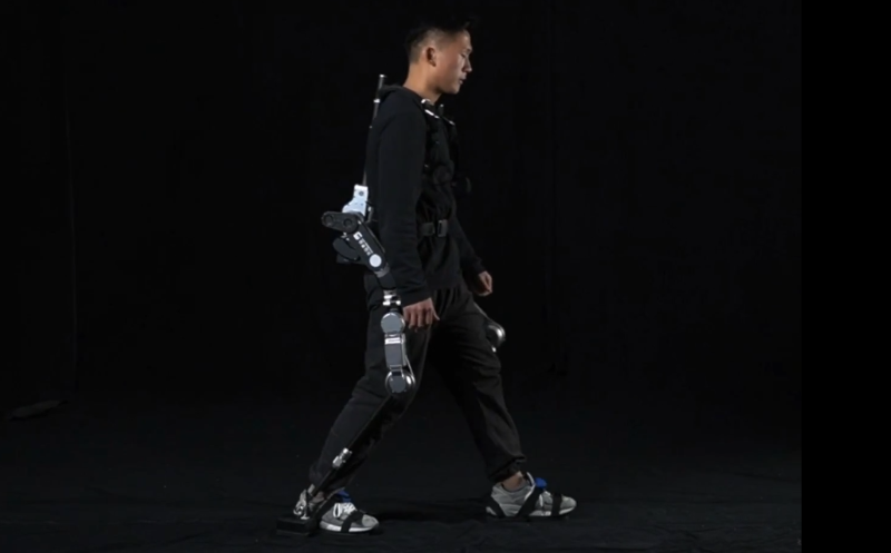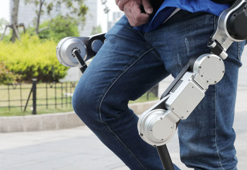 另外,这套设备包括一个运动控制器,外卖小哥可以借此对机器人发送指令。机器人的髋关节和膝关节为小哥的大腿、膝盖提供动力,而脚踝部分装有力学传感器,可以监测小哥的运动意图和运动姿态,然后告诉电机发出怎样的运动指令,来进行助力。