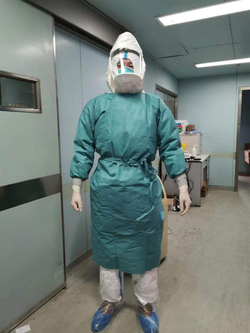 钟鸣在武汉市金银潭医院病房清洁区留影。图片来源:复旦大学附属中山医院资料图片