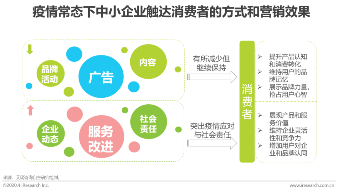 疫情后更多的中小企业关心的都是生存问题,营销费用可能首先会遭到斩首,但是营销如同企业和消费者之间的桥梁,桥梁可以变狭窄但不可被砍断,否则疫情过后企业可能要花费更大的成本去挽回消费者。另外,企业做营销并非是投广告、做内容的狭隘范畴,只要能够让消费者感知到企业的产品价值和消费欲望的都是有效的营销。企业在疫情期间做出的一系列措施都是企业能力、价值和社会责任感的对外展示,也是和消费者之间的有效沟通和说服。