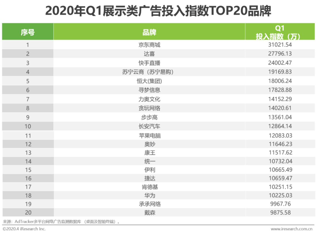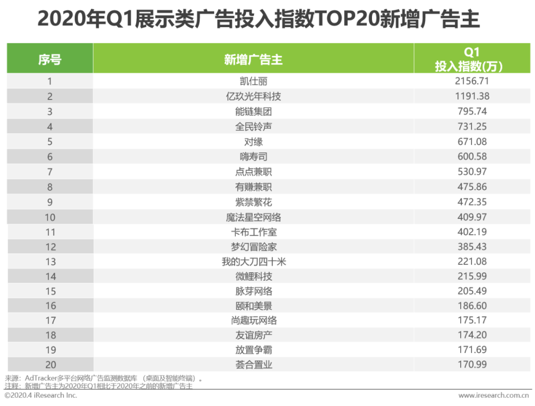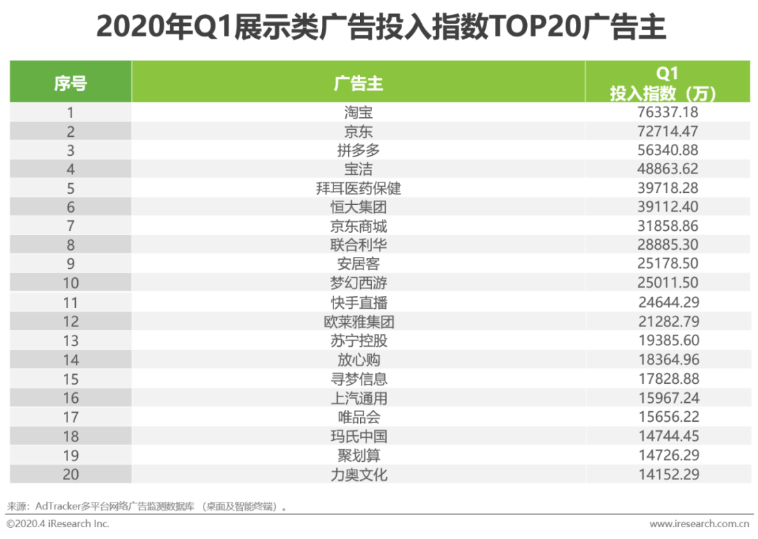数缕篇:2020Q1展示类广告投放榜单