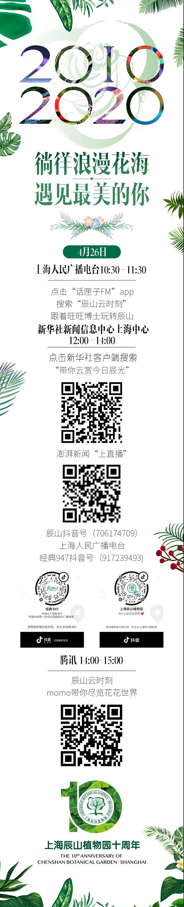 此外,辰山植物园还积极响应松江区向市民推出的“春季问山 山花烂漫”主题活动,即日起至2020年6月30日,本市居民姓名中凡是带有“春季问山 山花烂漫”中任何一个字(谐音不算)的游客即可凭身份证免票入园。