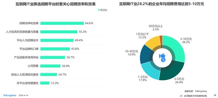 行业特征会影响到招聘特征,从TalkingData《在线招聘行业研究报告》可以看出,互联网行业招聘时善用人才在线测评工具来加强对候选人的考察——这既符合互联网行业从业者工作压力大,招聘时会更注重对候选人心理健康考量的实际情况,也符合互联网人善用数据分析的职业特征表现。
