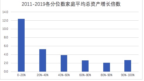 可以看到,在2011年平均资产最低的家庭,其增长幅度最大,九年增幅足有12.4倍。