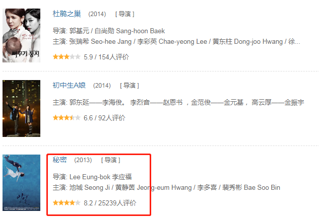 白尚勋目前在豆瓣评分最高的剧,是《秘密》。