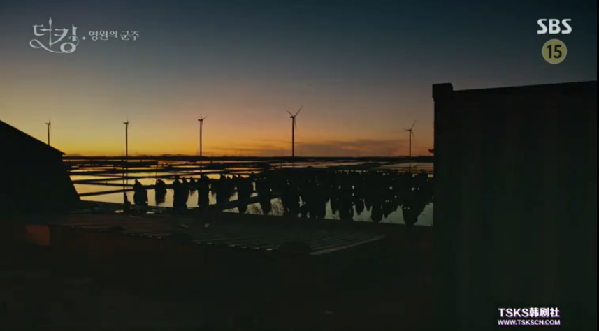 叛逃的亲王李霖集结了另一个平行世界的部下,这个晒盐场与夕阳互相映衬的场景也是美得让人窒息。
